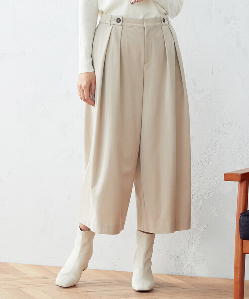 キーワード:パンツ レディース ウエストゴム クロップド ストレッチ レギュラー ワイドパンツ 無地