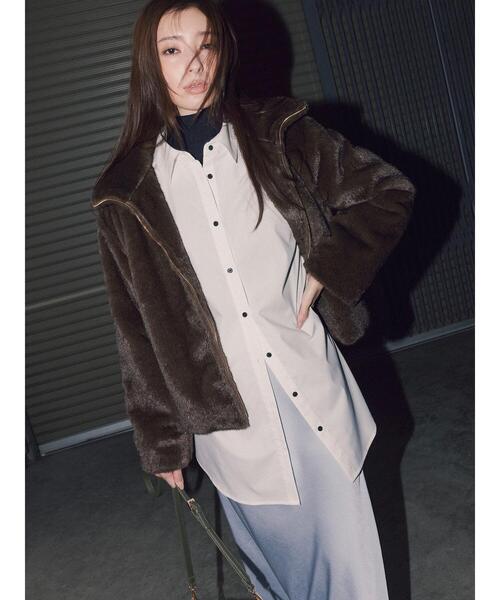 やわらかなグラデーションファーを使用したジャケット。首元はスタンドカラーになっており、ファスナーの開閉によって印象の変化を楽しめます。さらりとした裏地付きで着心地の良さを演出。休日のお出かけコーデに大活躍するアイテムです。