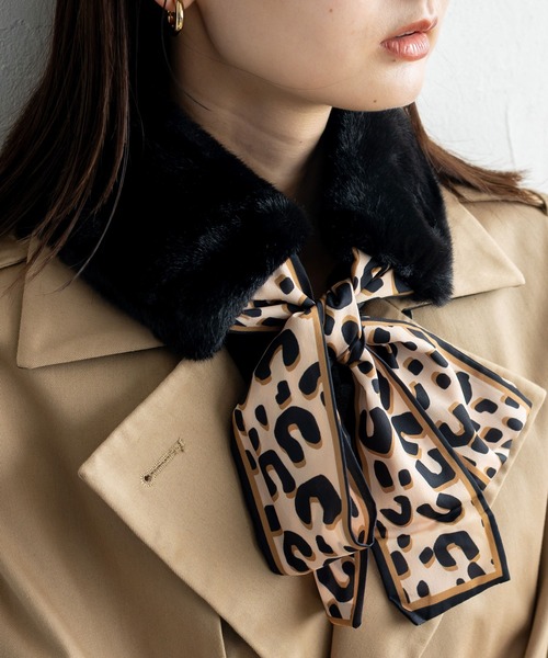 フェイクファー×レオパードリボン ミニティペットマフラーふんわり柔らかなフェイクファーが首元をやさしく包み込む、上品なティペットマフラー。