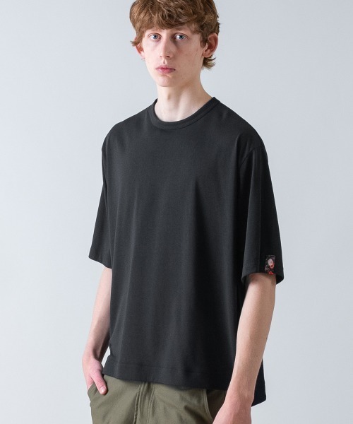 【 デザイン・シルエット 】リサイクルポリエステルを使用した 30/1 天竺素材は、軽くてさらりとした着心地が続く 吸水速乾・UV カット・抗ピリング の機能を備え、夏場も快適に過ごせる便利な1枚です。