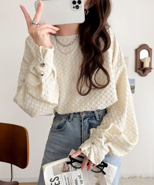 凹凸感のある素材とワイドシルエットが特徴的なプルオーバー。