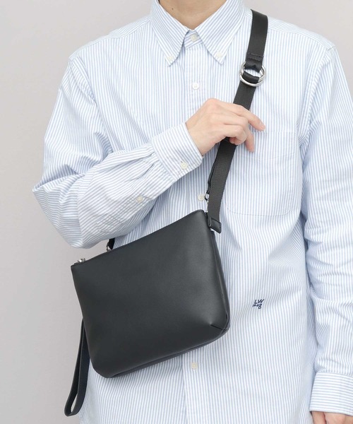 底ダーツ仕様の丸みを帯びたシルエットに、無駄な装飾のないミニマルデザインのショルダーバッグ。クラッチバッグとしても使用できる2WAY仕様。ショルダーストラップには、幅広で光沢のあるベルトにフラッシュシルバーのダブルリングバックルを合わせ、程よいモード感を演出。素材には、光沢を抑えた細かなシボ感のスプリットレザー(牛床革)を使用。本革の柔らかく、しなやかな使い心地と、合成皮革の手軽さを併せ持つハイブリッド素材は、普段使いはもちろん、オケージョンスタイルにも使いにもおすすめ。収納スペースは、A5サイズが収まるサイズ感で、スマートに持ち歩ける丁度良いサイズ。手軽に使えるマグネットボタン式の外ポケットや、小物の仕分けができる複数の内ポケットなど、コンパクトながら、使い勝手を意識した作りもポイント。