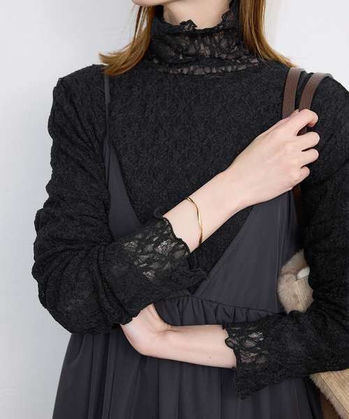 ・フェミニンなレースで仕上げたタートルプルオーバー。