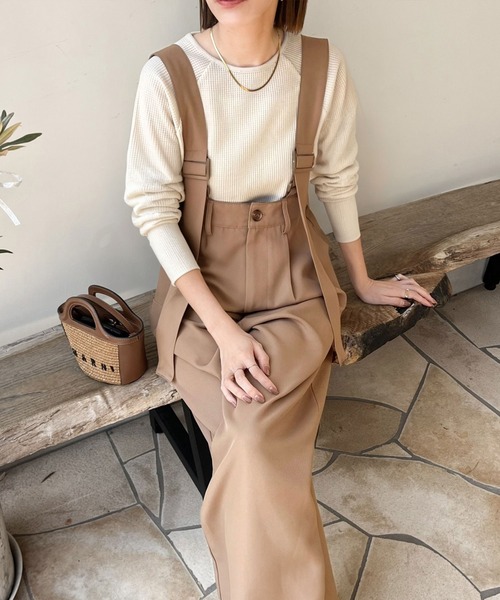 参考商品名:《sayo×クラシカルエルフコラボ》旬顔の太ベルト。タック入りハイウエストツイルサロペット