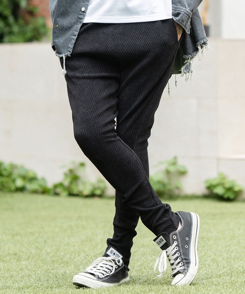 キーワード:パンツ メンズ ウエストゴム スキニーパンツ ハイウエスト フルレングス