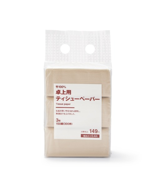 掃除 竹100%卓上用ティシューペーパー 3個 150組(300枚)