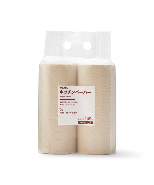 商品名:竹100%キッチンペーパー 2個 75枚 ロールタイプ