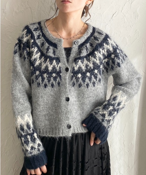 ◆季節感たっぷりの温もりをまとえる、ノルディック柄ジャガードショート丈カーディガン◆