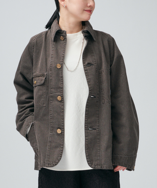 フロントに配したワークポケットやメタルボタンがアクセントとなり、シンプルな着こなしにも程よい表情をプラス。