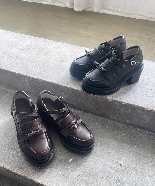 リボンが取り外せる2WAY厚底ローファー