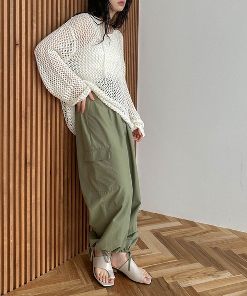 キーワード:カーゴパンツ レディース ウエストゴム スタンダード ハイウエスト フルレングス 無地