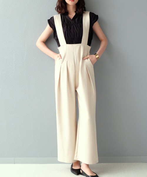 参考商品名:バックベルトデザイン ハイウエストサロペット