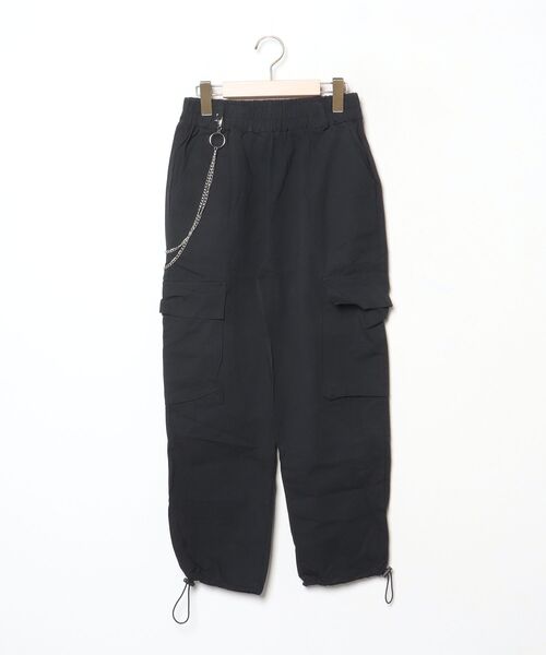 参考商品名:【LVEU.】バックルベルトチェーンカーゴパンツ / ボトムス パンツ カーゴ ワーク チェーン バックル ベルト ワイド ルーズ メンズライク ストリート ブラック