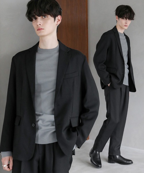 参考商品名:【セットアップ 3点セット】ダブル/シングル/ノーカラーテーラード+ストレッチスラックス+ハイゲージモックネックニット
