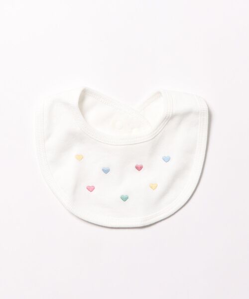 apres les cours(アプレレクール)の「ハート・デイジー刺繍スタイ」は、やさしいニュアンスのナチュラルなデザイン。ベビーギフトや出産祝いの主役にも♪
