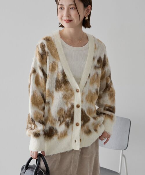 抽象的な柄が洗練されたムードを演出するカーディガン。
