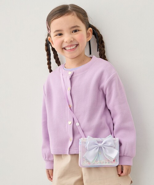 ■デザインリボン&シャラシャラ入りハートのモチーフが目を惹く、ガーリーな移動ポケット。