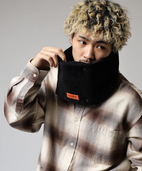 温かみのあるコーデュロイ素材に中綿を仕込んだ、UNIVERSAL OVERALLの2WAYネックウォーマー。