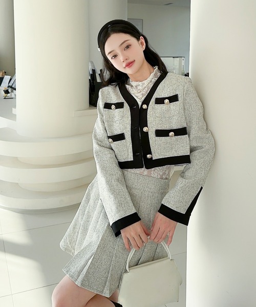 参考商品名:【Jasmine】モノクロバイカラープリーツスカートセットアップ