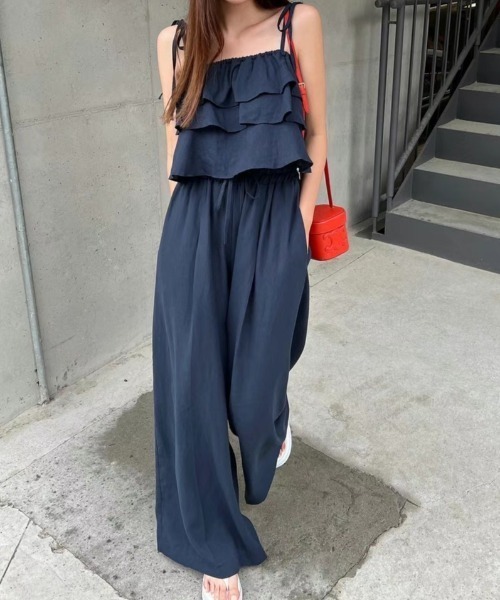 参考商品名:フリルキャミ+ワイドパンツセットアップ