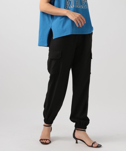 キーワード:カーゴパンツ レディース ウエストゴム ハイウエスト フルレングス 無地