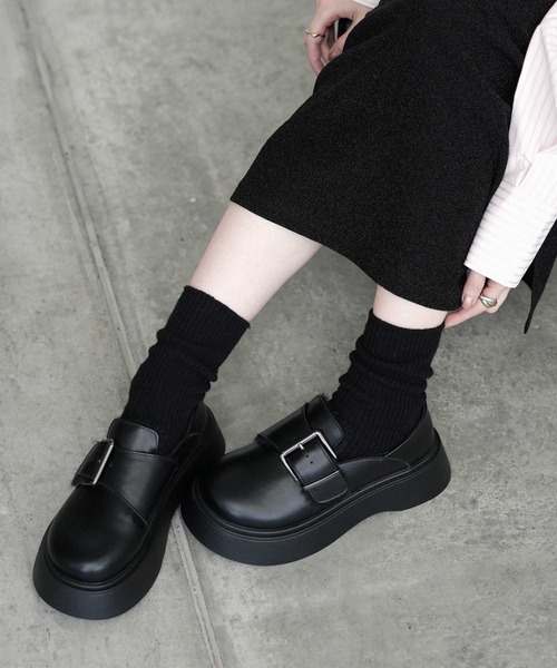 参考商品名:【Bulue.】2way厚底ローファーサボ