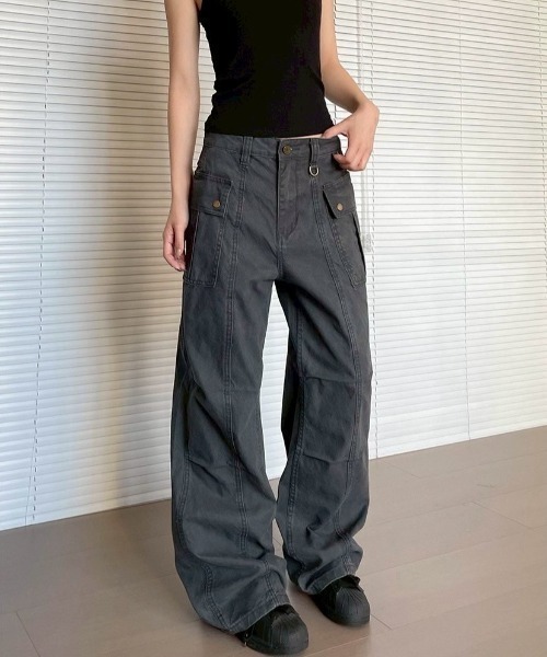 キーワード:カーゴパンツ レディース ハイウエスト フルレングス フレアパンツ