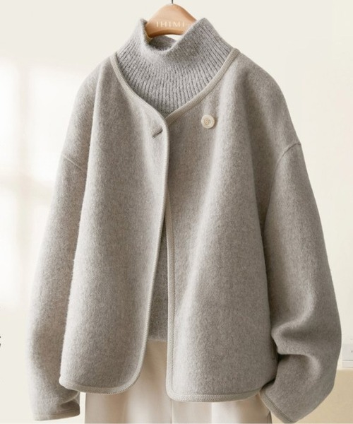 ◆やわらかなウールタッチ素材で仕立てたノーカラージャケット◆