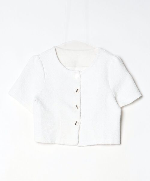 参考商品名:ファンシーツイード風ノーカラー半袖ジャケット