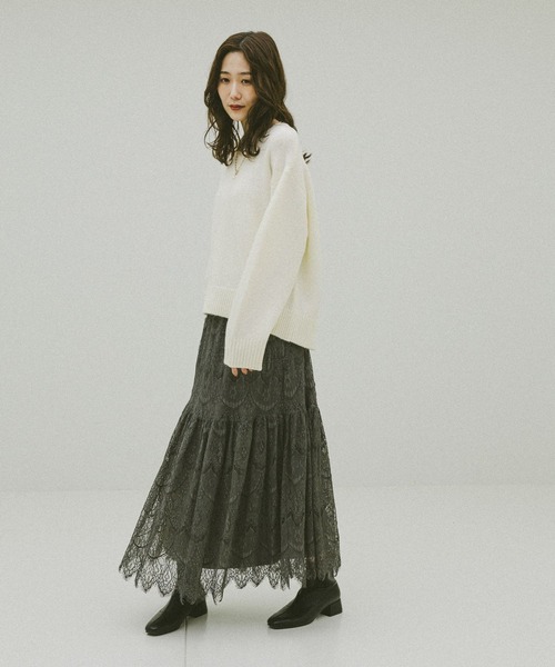 スカートは繊細なレースで、大人フェミニンな雰囲気です。