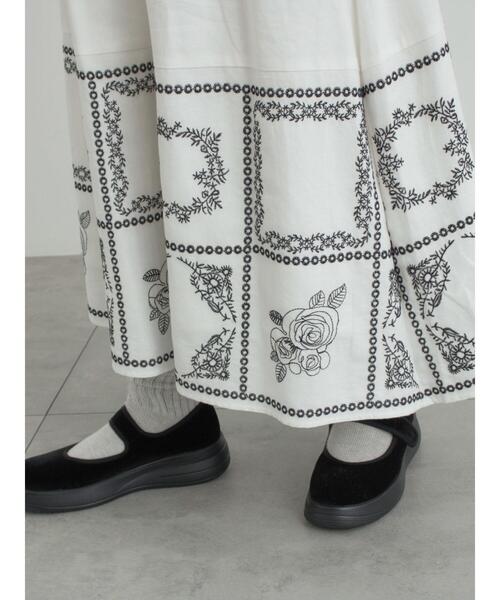 裾に繊細なモチーフ刺しゅうをあしらったギャザースカート。