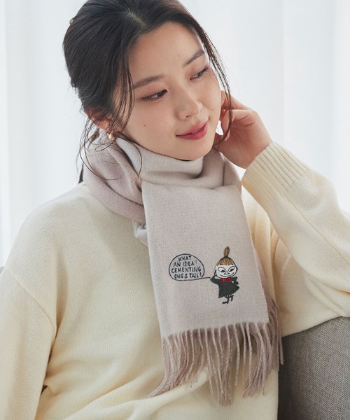 MOOMINとmacoccaの数量限定コラボレーション商品。リバーシブルのカシミヤマフラーに刺繍を施しました。