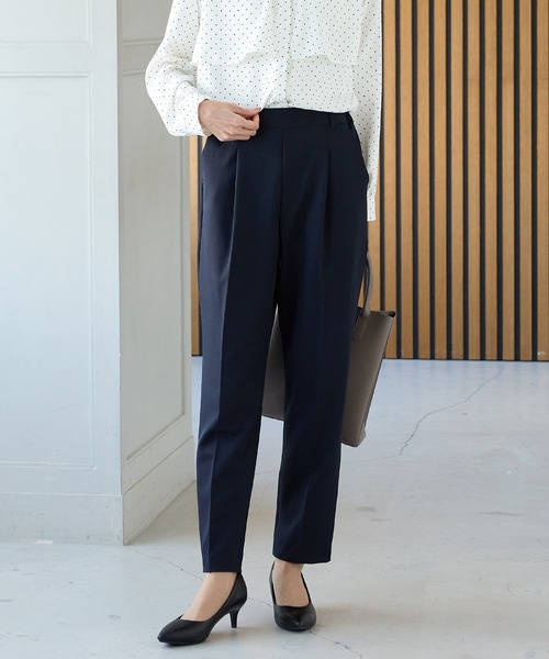きちんと感のあるセンタープレスと、腰回りのラインにこだわった、裾に向かって細くなる美しいシルエットで美脚効果も抜群。