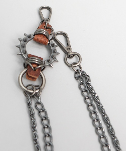 無骨なメタルチェーンにレザー調のアクセントを組み合わせた、存在感抜群のウォレットチェーン。
