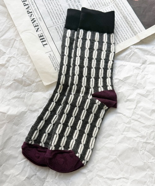 ケーブル編み風の立体的な編み柄が魅力のミドル丈ソックス。