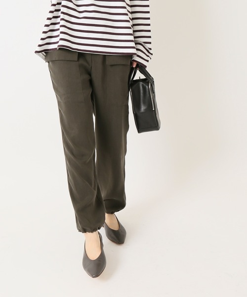 キーワード:カーゴパンツ レディース ウエストゴム ストレート ハイウエスト フルレングス 無地