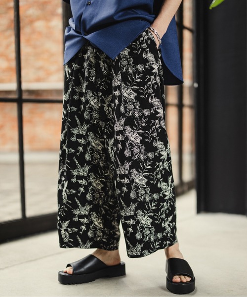 キーワード:パンツ メンズ クロップド テーパード ハイウエスト ワイドパンツ 花柄