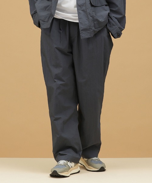 キーワード:パンツ メンズ ウエストゴム ストレート ハイウエスト フルレングス ワイドパンツ 無地