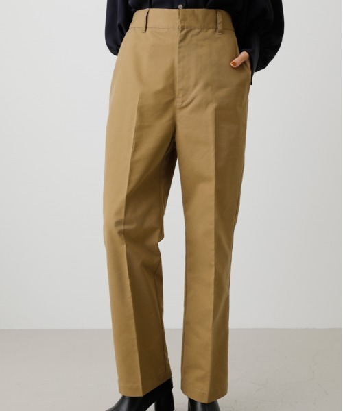 キーワード:チノパン レディース ウエストゴム ストレート センタープレス ハイウエスト フルレングス 無地