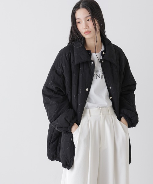 ひょうたん柄の圧着キルトが目を惹く、表情豊かなラグランミドルコート。ボリューム感のある丸みのあるシルエットが、カジュアルさを抑え、フェミニンで女性らしい雰囲気に。裾のドローコードでシルエット調整も可能で、その日の気分やスタイリングに合わせてアレンジが楽しめます。