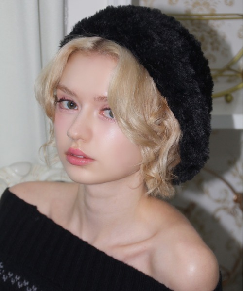 ボア ニット ベレー帽