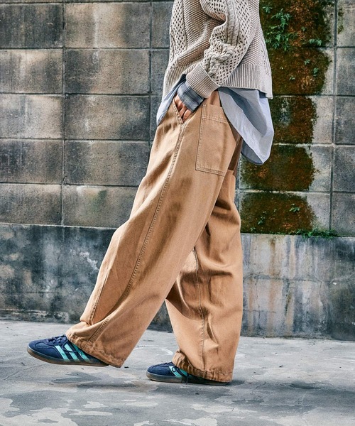 ヒップから太ももにかけて丸みを出し、裾に向かってすぼまった立体的なシルエットが魅力のパンツ。