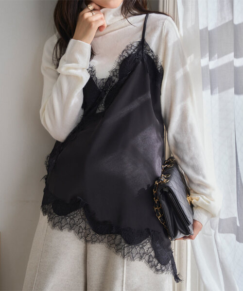 トレンドのレースデザインが大人可愛いサテンキャミソール。