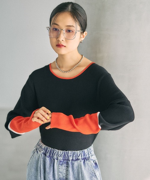 LEPSIMで大人気の袖配色がポイントのニットプルオーバー