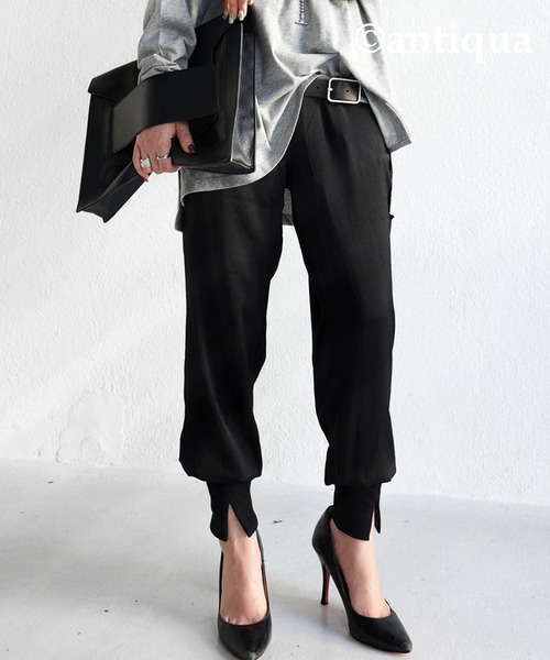 参考商品名:美脚見せ叶う♪リブ付きサテン生地パンツ