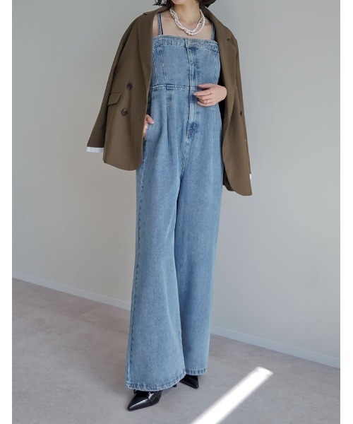 参考商品名:[低身長/高身長サイズ有][着痩せ&脚長効果]コットンデニムベアオールインワン