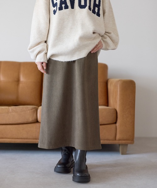 表面は細畝のコーデュロイ、裏面にはふんわりとしたシャギー素材を使用した、季節感たっぷりのロングスカート。
