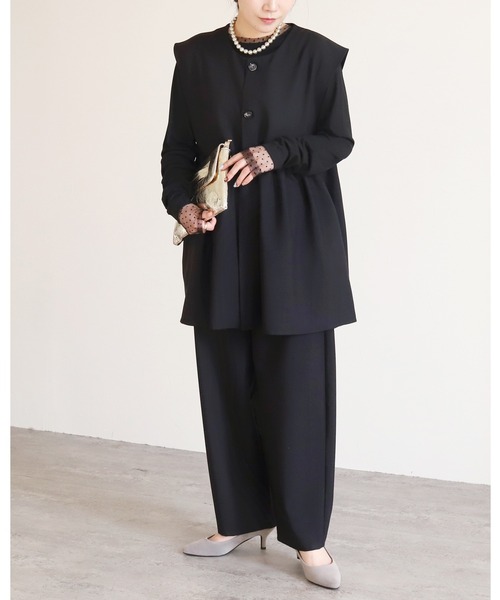 ★品番 bel-hr-0627-set1 ノーカラーベスト×テーパードパンツ2点セット