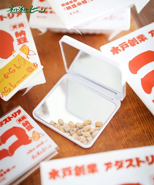 ミラーを開けると納豆シールも貼られており思わずクスっとなってしまうアイテムです。