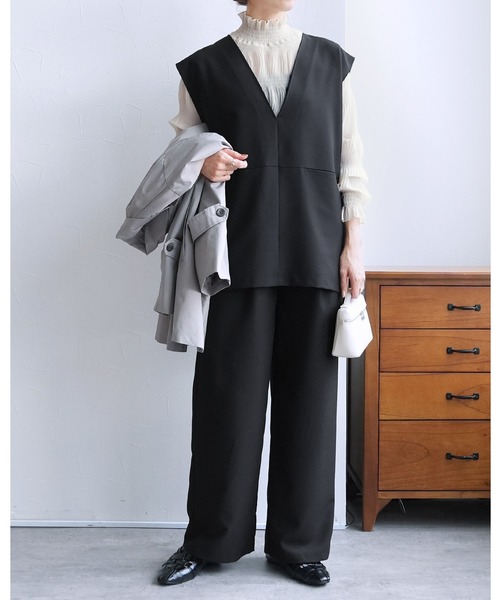 ★品番 bel-hr-0627-set3 ノーカラーベスト×セミワイドストレートパンツ2点セット